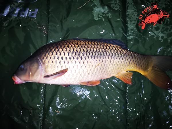 Néhány nappal később egy pár órás esti pecára szaladtam le a partra. Este 9-ig szabad csak a pálya a kijárási korlátozás miatt. Szűk 5 óra állt rendelkezésre, ennyi idő alatt már eredményt vártam el a múltkori fogás nyomán. A Fish golyót is magammal hoztam a fix kagylós mellé, amit a túlparti belógó fák alá dobtam. Egy szem süllyedő szólóban, nem használtam mellé semmit, ami tovább aktiválja. Nagy meglepetést nem okozva ismét a kagylósra érkezett az első kapás, a megszokott őrült zsinórhúzással párosítva. A legutóbbi pecával ellentétben a ponty már nem az aprólék közül való volt, hanem egy szép színes hosszúkás nyurga feküdt a matracon, saccolva 6 kilós súlyával.
