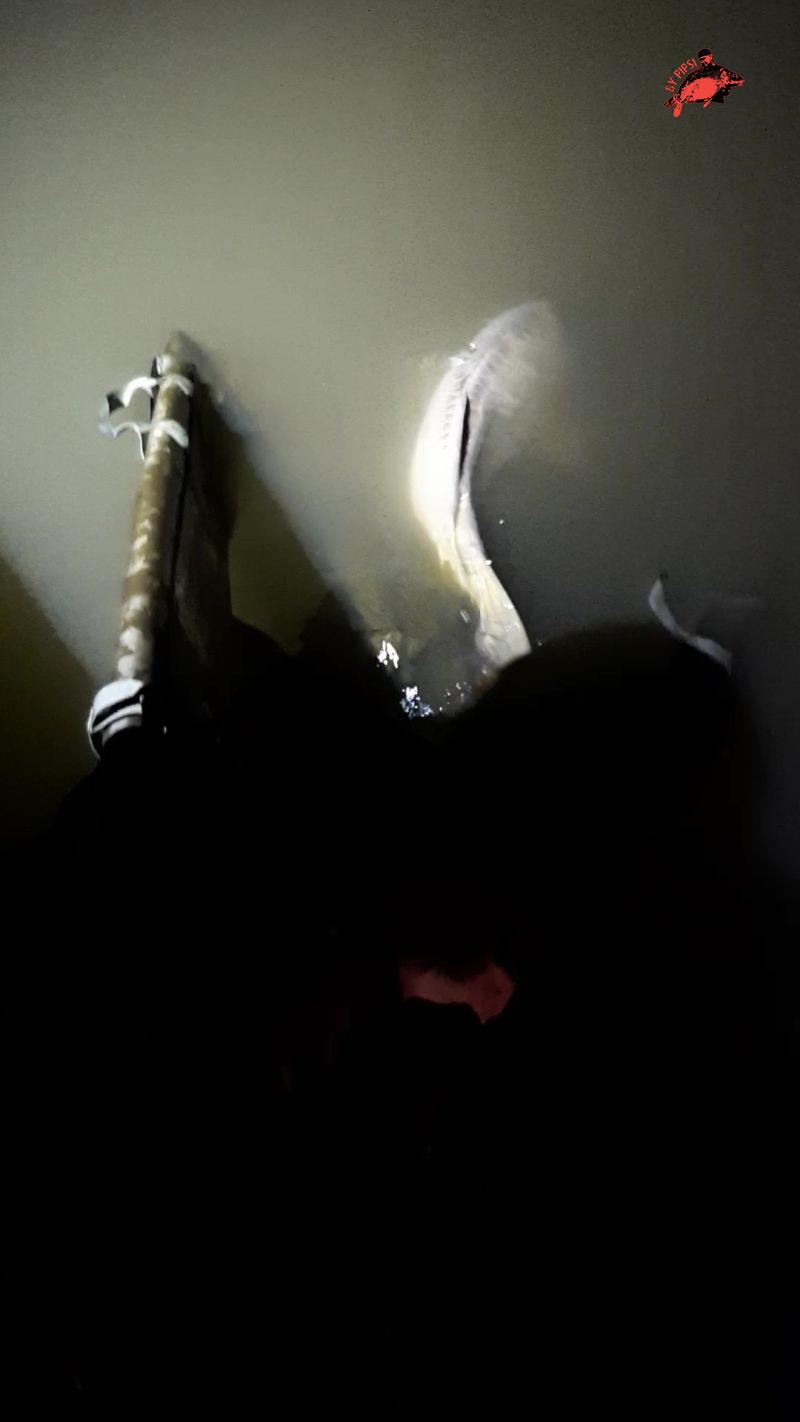 Reméltem, hogy István szereléke körül is lesz majd mozgolódás.Két óra elteltével, néhány perccel 11 óra előtt, újabb kapás törte meg a csendet, ezúttal az Ő jelzője adta tudatunkra, hogy valaki érdeklődik a felkínált bojli iránt. Több, mint 15 perces fárasztás után ismét egy nyurga került a matracra, melynek súlya 9 kilogramm felett volt.