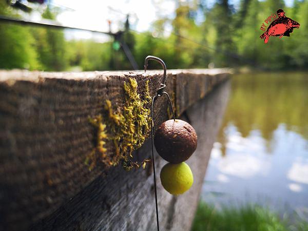 Az egyik vendéglátónk korán reggel fogadott minket, gyorsan a lehető legtöbb kérdést szegeztem felé a halak esetleges tartózkodási helyéről, amit a környezet látványa is kiegészített. Az egész partszakasz bokros, akadós, bedőlt fák, és egy gyönyörű lagúna jellemzi, ahol az egyik forrás csordogál a tóba. A partközeli részeken a meder kemény, köves, rengeteg vízi táplálék megtalálható. Beljebb vastag, puha iszap borítja a talajt. Nehezítette a helyzetet, hogy csak a stégről lehet horgászni, illetve mellette egy kis területről, mert kerítés és az erdő szegélyezi nagy részben. Így bár nem volt szó nagy távolságokról, viszont dobással elérhetetlenek lettek volna a kiszemelt helyek. Szerelékeinket ezért etetőhajóval juttattuk be. Az időjárás változékony arcát mutatta a napokban, ami igazából másodlagos szempont is volt, a lényeg, hogy ne essen a gyerekek miatt. Feleségem, Bernadett előtt feltártam a Big Fish paletta valamennyi tagját, teljesen szabad kezet adtam neki a szereléket, illetve a csalizást illetően. Ő elsőre a Fish pop-up mellett tette le a voksát, csalicsavarral Spinner rigre rögzítve, mikro, - illetve 6mm-es halas pellettel kiegészítve, mellé még a Fish bojliból néhány szemet felezve is szórt a hajó tartályába.