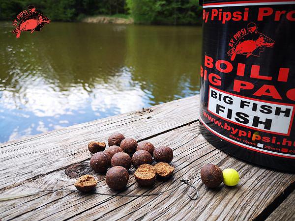 A halas bojli felrobbantotta a vizet, viszont hiába próbálkoztam a másik szerkón a többi csalival, csak a Fish működött. Próbáltam többféle csalikombót, lebegőt szólóban, vagy maggal kiegészítve, nem tudtam kapást kicsikarni. Mindeközben a tintahal vonzotta a pontyokat, Kedvesem újabb bajszossal büszkélkedett.
