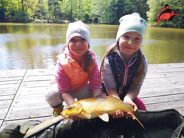 Az utánpótlás 5-5 percet ült a spiccbot mögött, de mivel ez idő alatt nem jöttek a snecik, csüggedten kerestek maguknak más elfoglaltságot. Ekkor volt egy nagyon gyenge, kis maszatolós kapásom, gyorsan magamhoz hívtam a nagyobbik lányomat, Zsófit, hogy segítsen a fogást partra húzni. Csillogó szemekkel kapaszkodott az orsó hajtókarjába, és alig várta, hogy meglássa a közös zsákmányt. Nóri eközben anyával figyelte az eseményeket, szákolásra készen. Amikor először felbukkant a kis koi, akkor volt csak igazán nagy az öröm. Aranyhal!!!!- kiáltották kánonban. A közös fotót a nap fénypontjaként élték meg, öröm volt látni a mosolyt a kis arcukon.