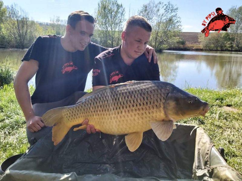 Ám beszéljünk a dobós végszerelékemről, mely csak annyiban tér el az előzőtől hogy egy helikopter szerelékről beszélünk,illetve a horgot ezen a készségen már 8-as méretűre váltottam. A halak változó méretben és olykor fajtában is jöttek horog végre, azonban a horgászat vége felé beugrott a várva várt banda nagy. Valér barátomnak egy igen csak lomha kapással szépen lassan elkezdett emelkedni a swingere és megszólalt a jelző is. A bothoz lépve egy határozott ráemelés után, sikeresen meg is akadt a hal, melyet ekkor még nem is gondoltunk nagynak , azt meg pláne nem ,hogy a mai peca legnagyobb hala lesz. Egy bő háromnegyed órás fárasztás után végre megmutatta magát ez a gyönyörű 15-kg feletti tőponty. Nem csak nálunk , de a szomszéd horgászok körében is nagy volt az öröm hiszen a nap nagy részét uraló, kapástalan időszak végét ez a potyesz szakította meg.