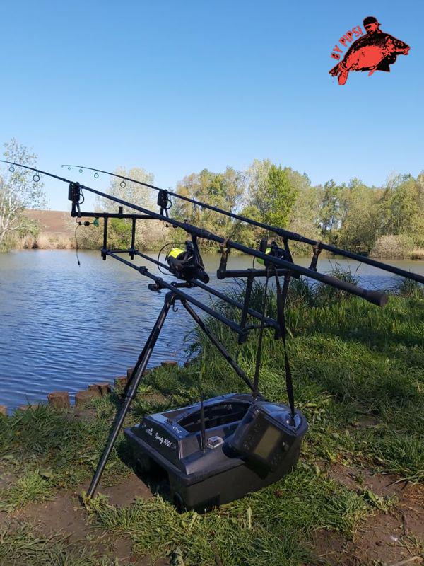 A már szinte megszokott, horgászat megkezdése előtti teendőinket elvégeztük, kipakolás, botok össze rakása, hely és csali ki választás stb, addig megfigyeltem 1-2 dolgot ami arra utalt hogy nem nyúltunk mellé hely szempontjából sem. Ponty ugrásokat láttam ,majd fordulások tűntek fel a szemközti sziget alatt, jobban megfigyelve a bokrok mozgását is láttuk elvétve. Valér mindkét botját etetőhajó segítségével juttatta be a kiszemelt helyre, eközben én bíztam a felmelegedő vízben történő kereső pecában, így a baloldali botommal, a velem szemben elhelyezkedő akadó sort dobtam meg, másik bottal pedig a belógó fa ága alá húztam szintén etető hajó segítségével ,társam pedig elszántam a sziget jobb oldalát horgászva próbált meg kis mennyiségben koncentrált etetést kialakítani. Csali választás szempontjából, jómagam 2 ízzel érkeztem ami nem volt más mint az EPER-KRILL és az általam legkedveltebb csali, ami egyik túrámról sem hiányozhat, a SPICE azaz a nagy mennyiségben Chilit is tartalmazó Csípős, enyhén fűszeres bojlink, amit nagy megelégedéssel mondhatom, nekem mindenhol adott halat. Barátom is szintén 2 ízt hozott magával mely a nálam is bevált eper-krill és az általa kedvelt FISH, avagy egy extravagáns halas bojli.