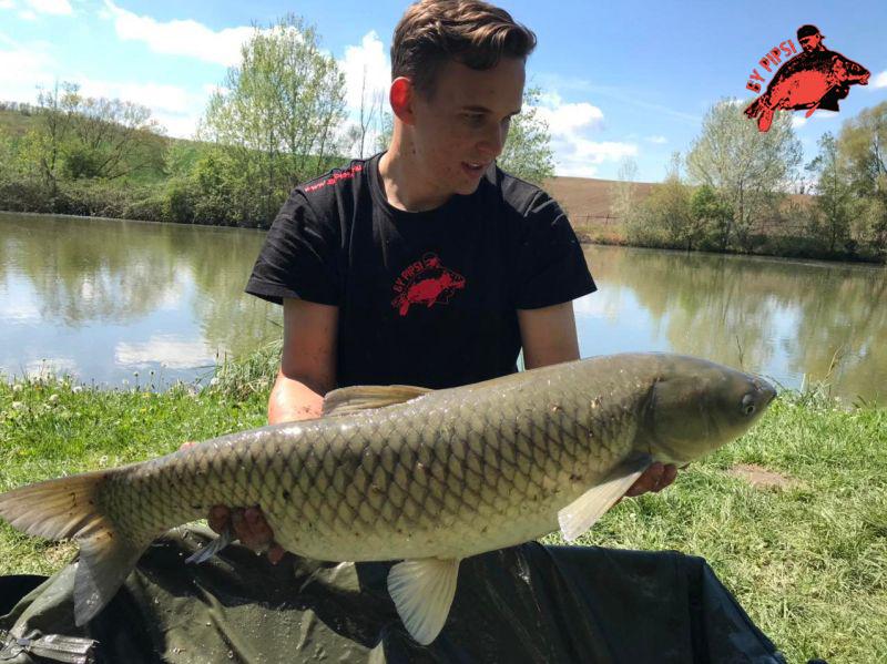 Aztán volt egy több órás kapástalanság, mikor a tó egész területén senkinek , még csak egy csippanása sem volt a kapásjelzőjén , majd végre megtörni látszott az ,,átok" hisz a bal oldali kereső botomra megjött az a hal, amire vártam , maszatolós kapást követően már egy szép 6kg körüli amúr háta csillant meg a vízfelszín tetején,mely egy eper-krill pop up-ra csábult el, ám miközben gyönyörködtem az amúromban , Valér botja is elfüstölt mely a sziget sarkánál talált gazdára egy szép töves személyében.