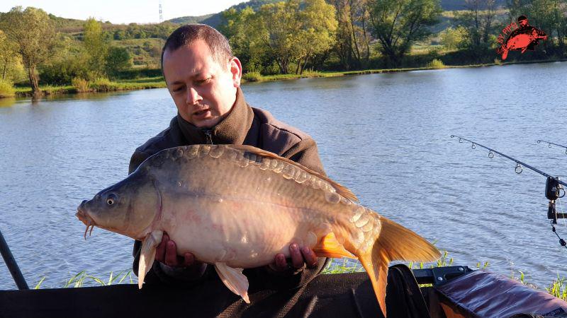 Ezután szinte 20 percenként, felváltva jöttek a kapások, hol az egyik botomra, hol a másikra. 7-10 kg-ig fogtuk sorba a halakat este 8 óráig. Beesteledett, viharos, orkán erejű szél kerekedett, a felszínen sűrűbbek lettek a rablások is, tudtam, hogy a ragadozók megzavarják ezen a kis vízen a békés halakat. Ez okot adott egy jó pihenésre. Az éjszaka folyamán elvétve fogtunk 1-1 pontyot, éjfélre a szél is alábbhagyott. Hajnali 5 órától, ahogy virradt, újra beindult a gépezet, jöttek a bajszosok ismételten, a többi 4 ízt ki sem tudtam próbálni idő hiányában. Szelektálni próbáltam a horog és a csali közötti távolság növelésével, de nagyon mohó halak falták az etetésemet. 14 darab pontyot sikerült szákba terelnem, és nagy örömömre nem volt egy halvesztésem sem. Nem egy kimondottan nagyhalas pálya ez a bányató, de azt tudom, hogy lakja pár bitang nagy ponty és amur. Legközelebb őket veszem célba.